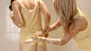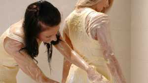 This is an enjoyable messy, easy paced shoot of two girls experiencing the new sensations of sploshy play.