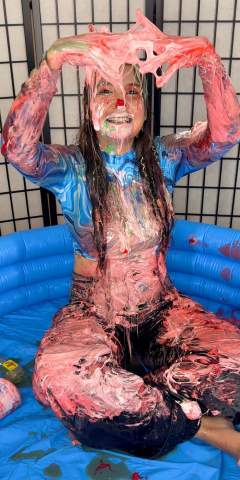 WetandMessyEllie got her top filled with custard by GungeDrop
